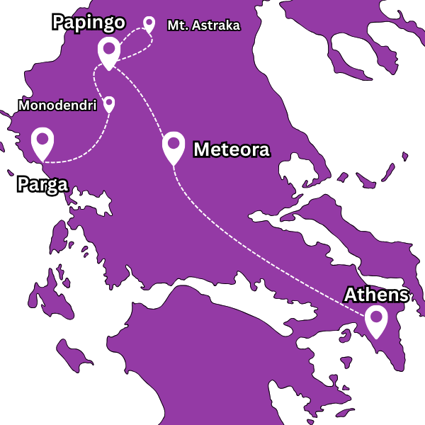 We’ll kick off the day with a scenic drive through northern Greece, stopping in the lakeside city of Ioannina for breakfast. From there, we’ll continue through some of the country’s most underrated natural landscapes before arriving in Papingo – a picture-perfect mountain village tucked inside Vikos – Aoös National Park.